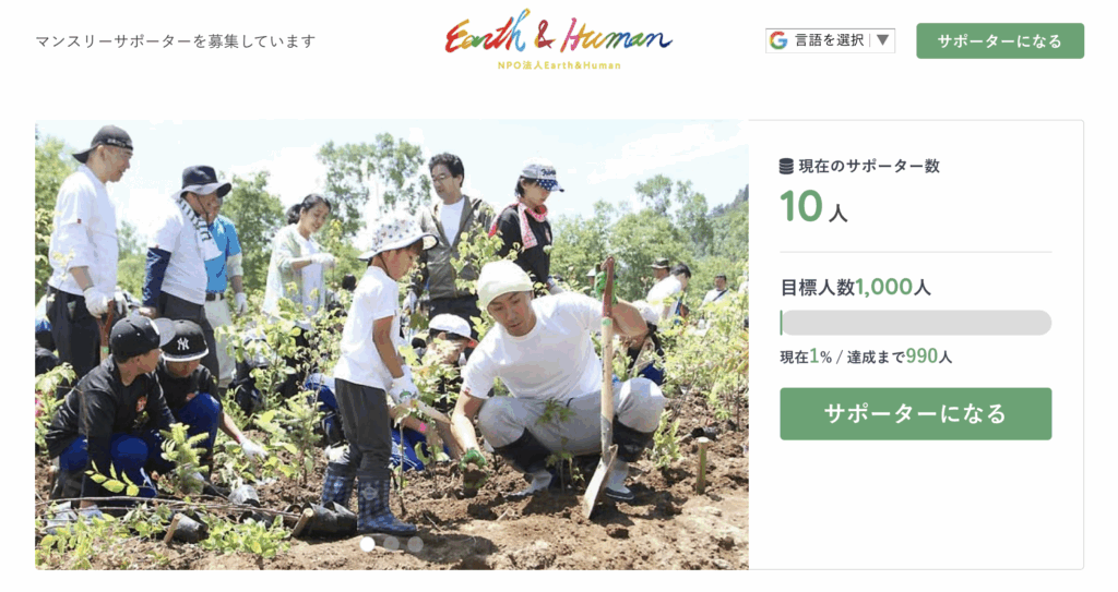 美しい地球環境を未来に届けるために、人々の力を集めて大きな行動につなげていきたい。Earth&Humanのマンスリーサポーターに是非ご参加ください。