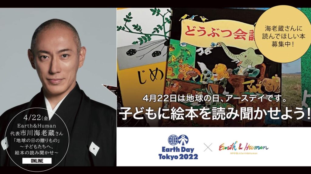 この夜、NPO法人Earth&Humanの代表、市川海老蔵が子どもたちのために、オンラインで絵本の読み聞かせをいたします。