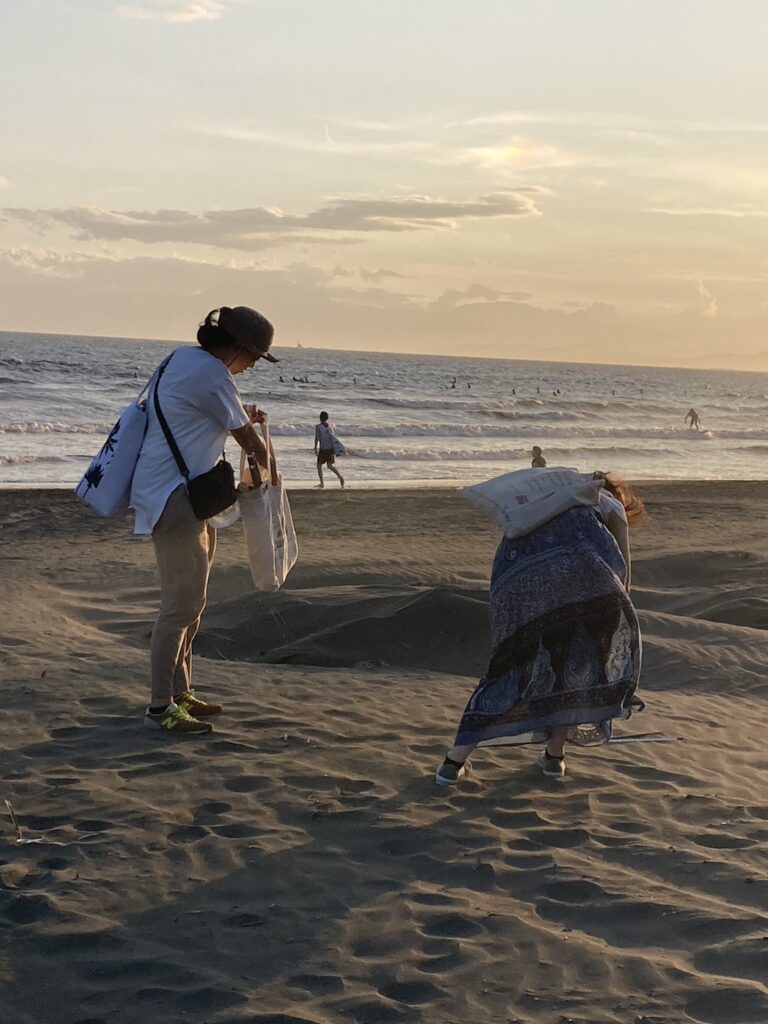 スタート時は西日が熱く感じられましたが、次第に日が暮れ夕日に切り替わると、海風も心地よく快適な時間でした。かえって風で回収したゴミが飛ばされないように、工夫しつつの活動でした。