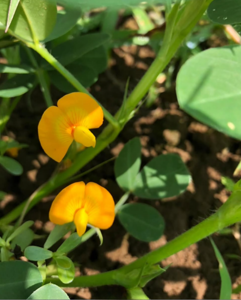 落花生は花を付けているので、お花が地面に潜りやすい様に周りの土を手で柔らかくしました。