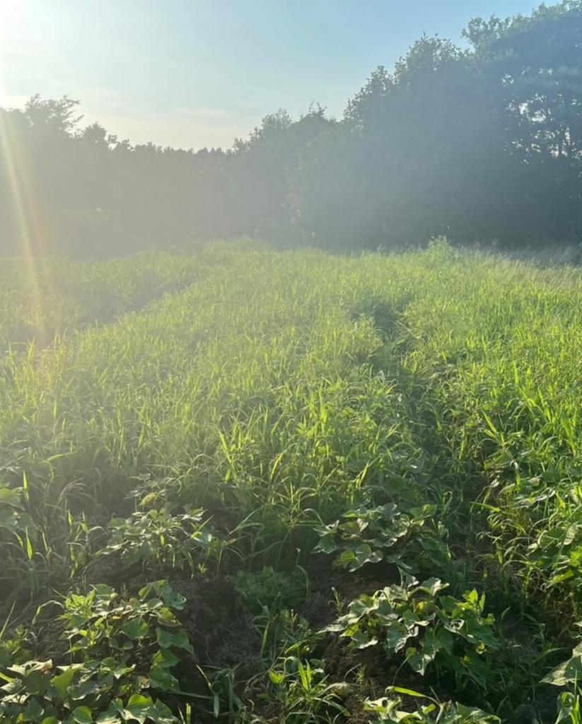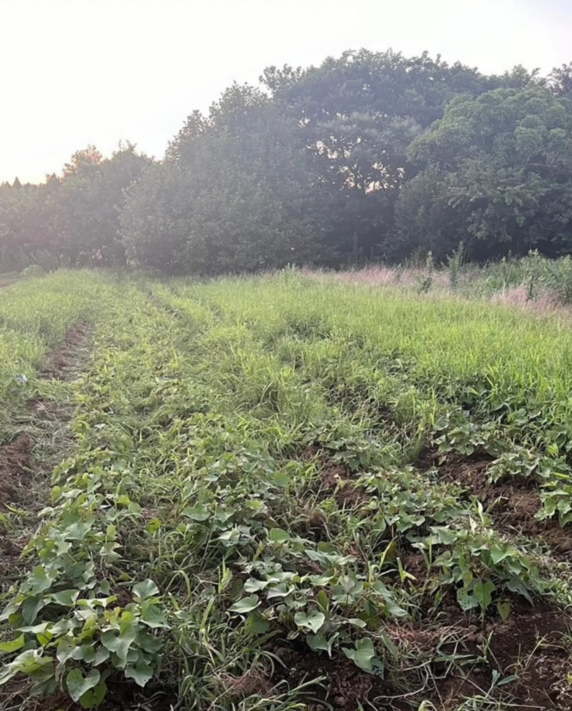 草の海が広がる畑を前に、ぼう然と佇む我々😅