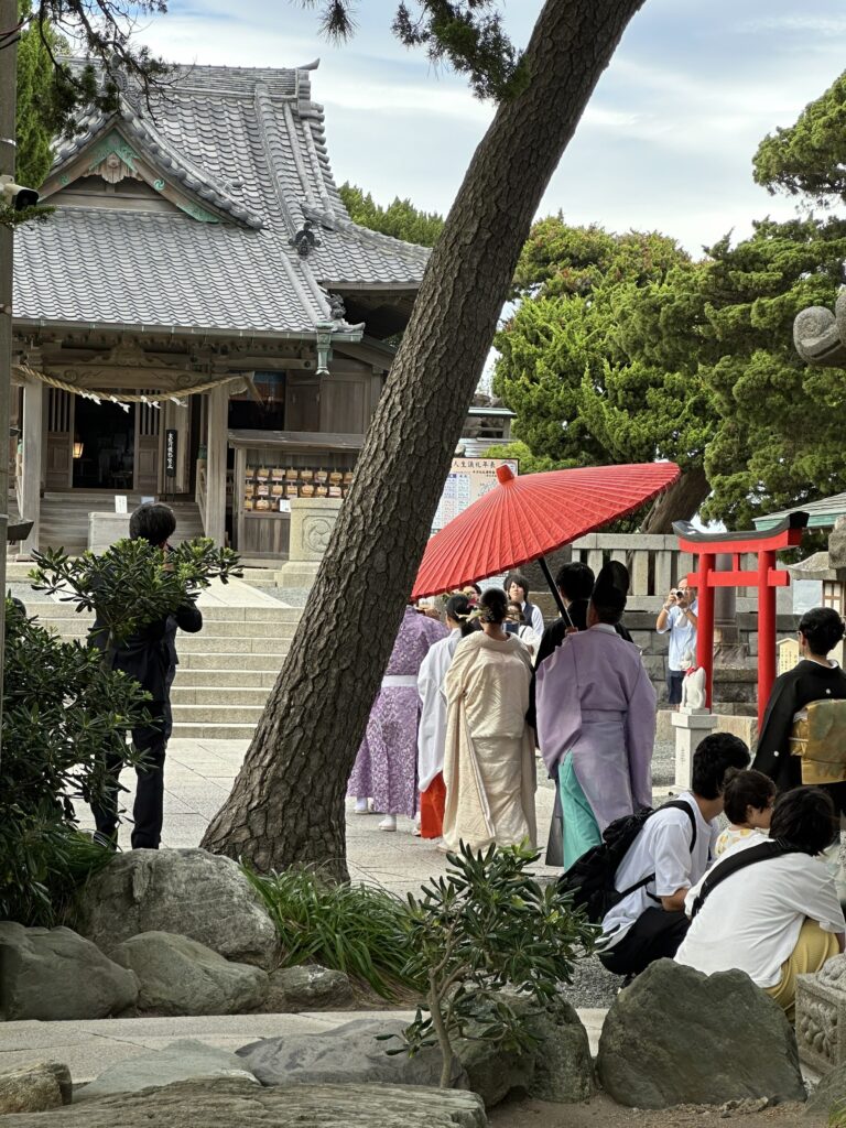 すぐ近くの森戸神社では丁度結婚式が✨幸せのお裾分けもいただきました☺️