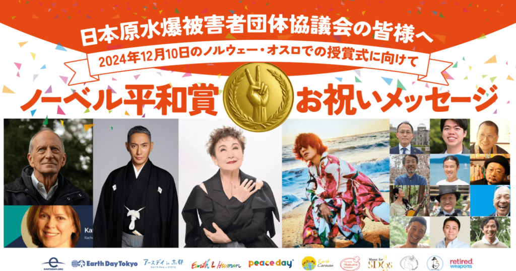 この祝辞は、Earth&Humanと連携事業を行う一般社団法人アースデイ東京を通じて、2024年12月10日にノルウェー・オスロ市庁舎で開催されるノーベル平和賞授賞式に出席する日本被団協の代表者に手渡されました。