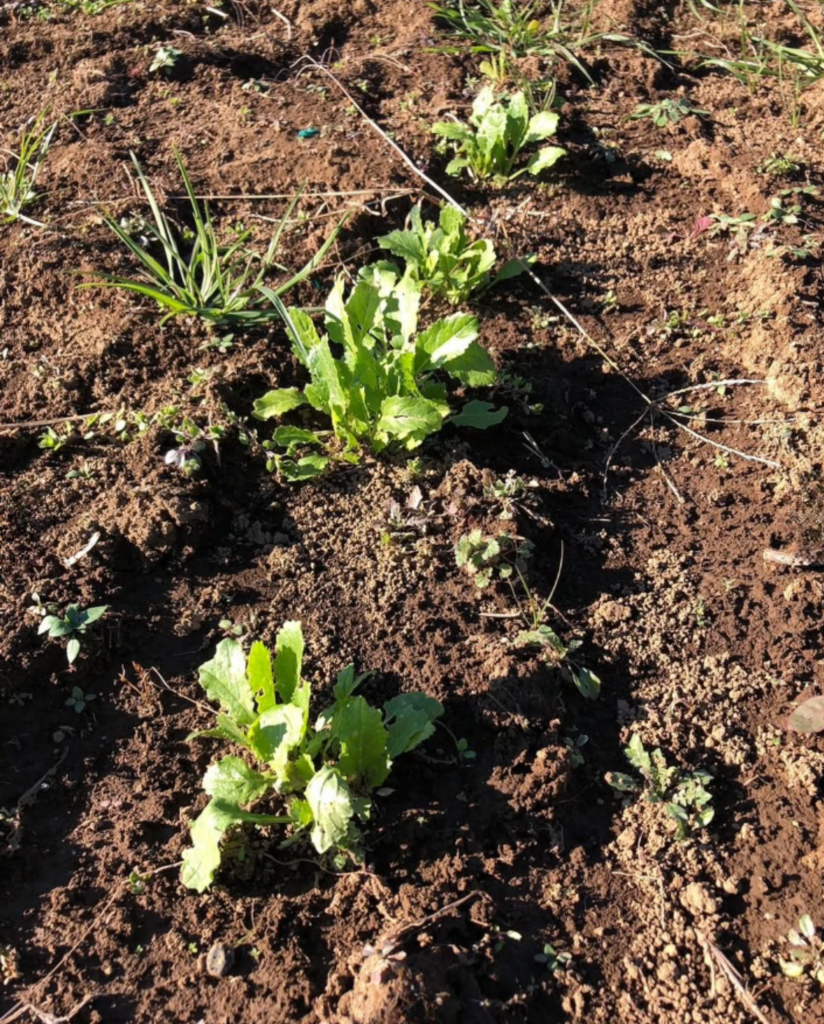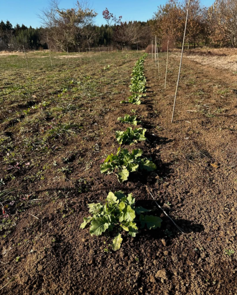 10月のさつまいも収穫作業の時に参加者全員で植えた、大根、春菊、カブがじわじわと育っています🌱