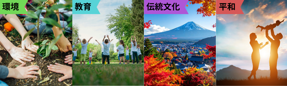 そこで、【環境】【教育】【伝統文化】【平和】の4つのスローガンを掲げ、コンテンツを企画してゆく運びとなりました。
